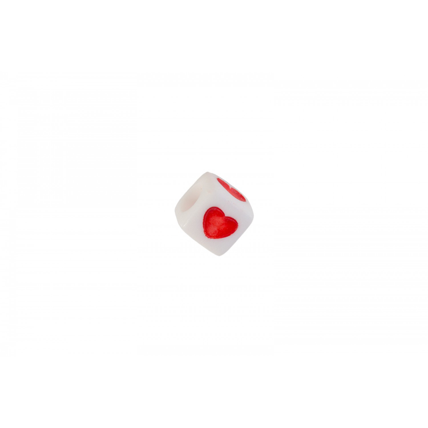 Ακρυλική χάντρα κύβος με καρδιά με 4mm τρύπα