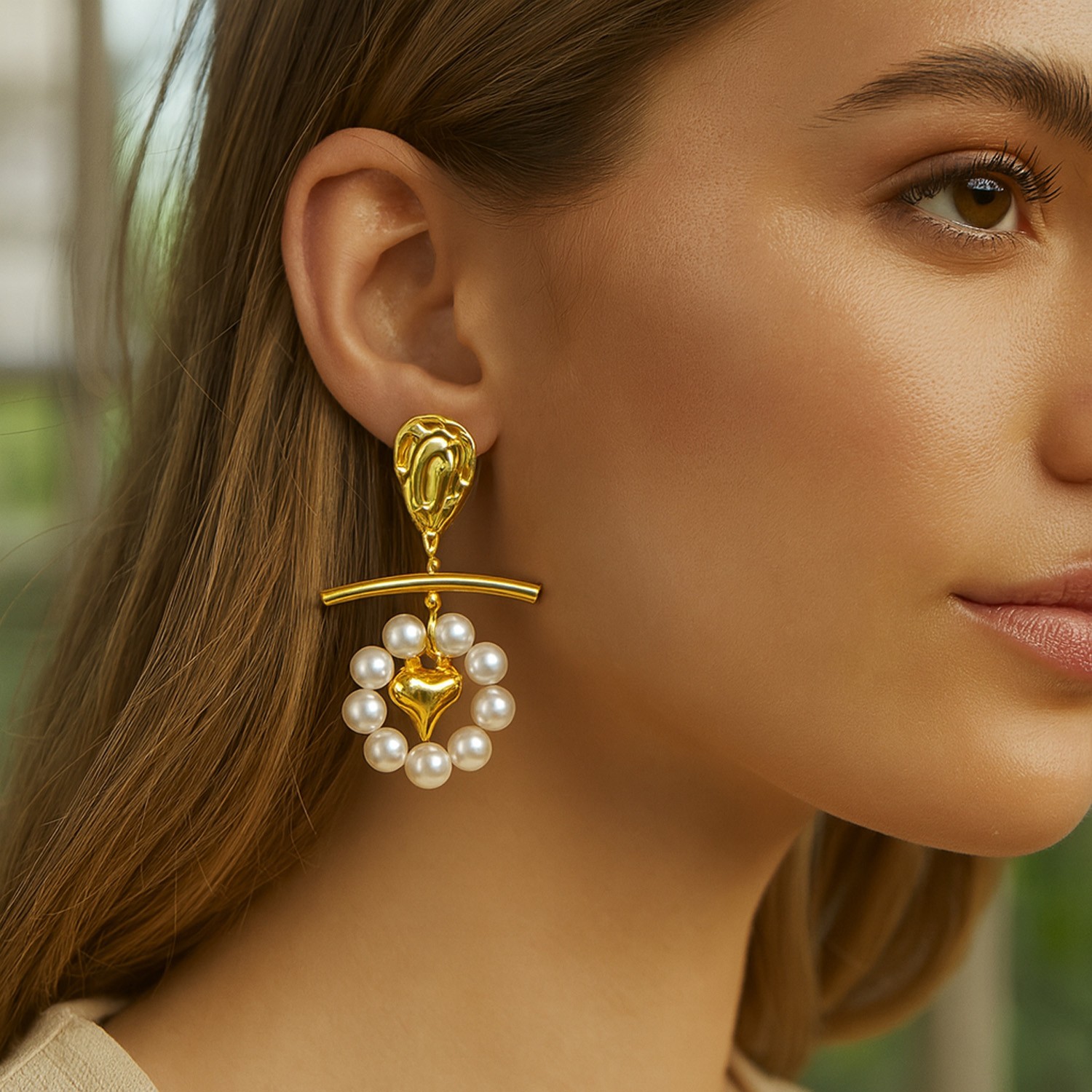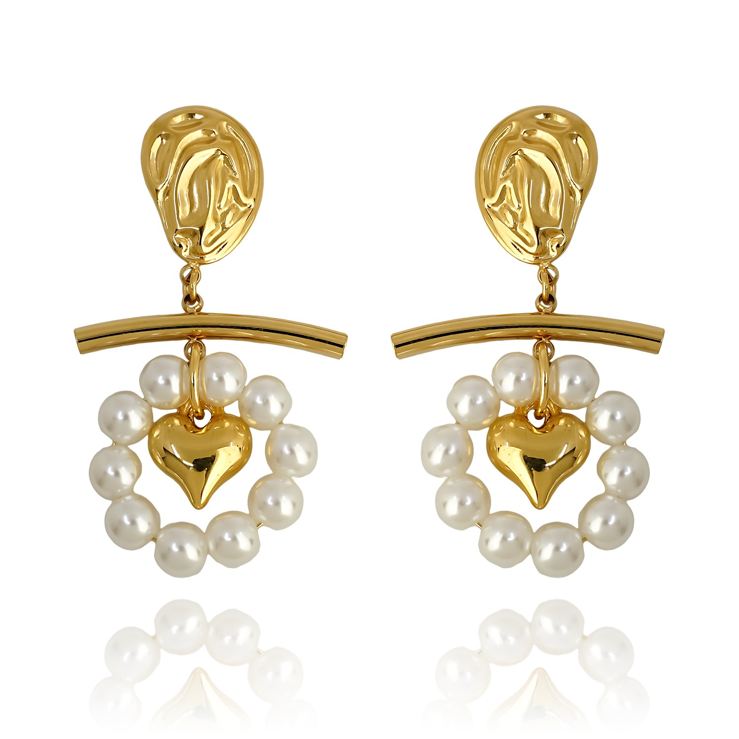Ατσάλινα σκουλαρίκια με καρδιά και πέρλες
