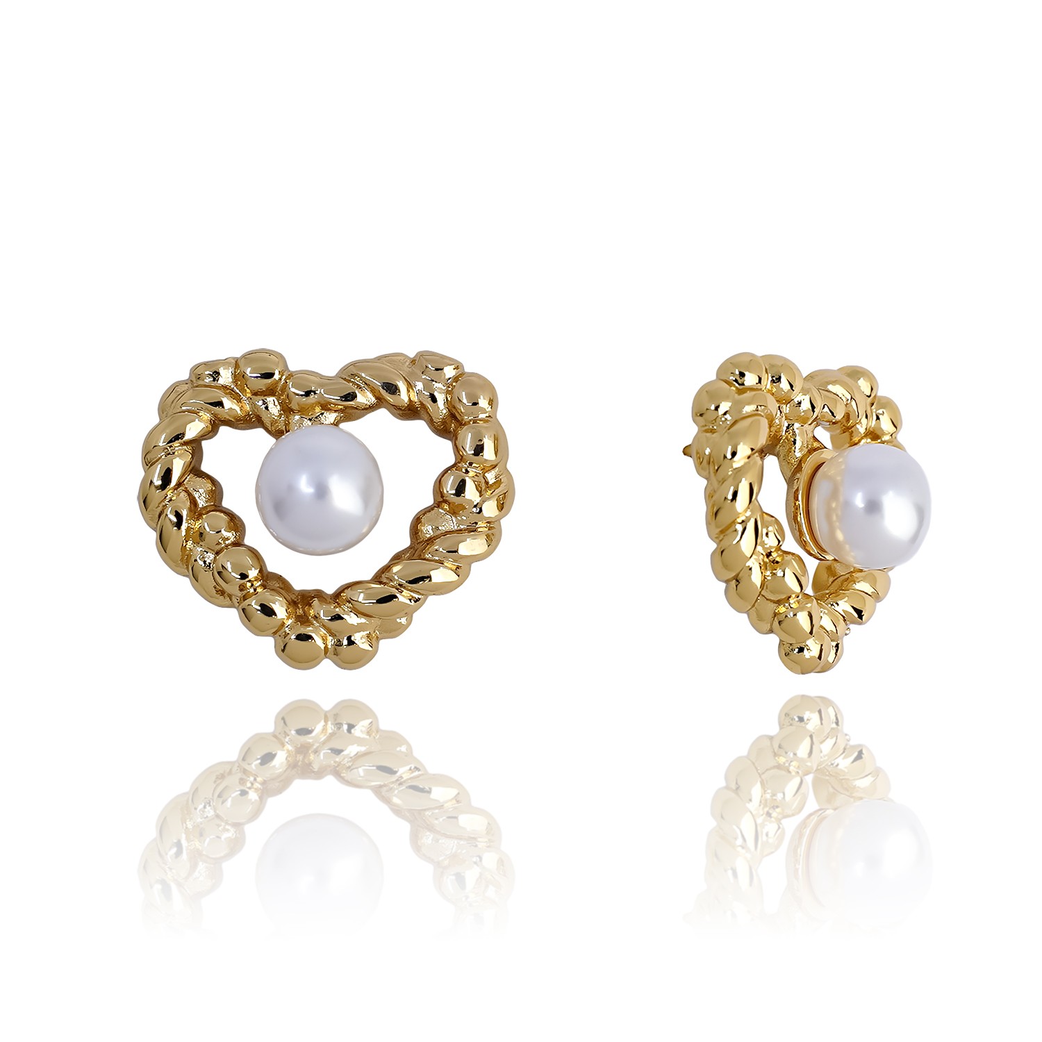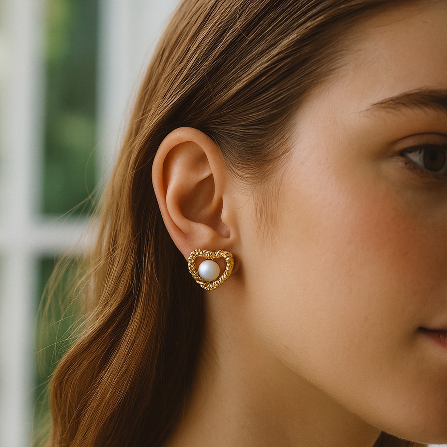 Ατσάλινα σκουλαρίκια καρδιά με πέρλα