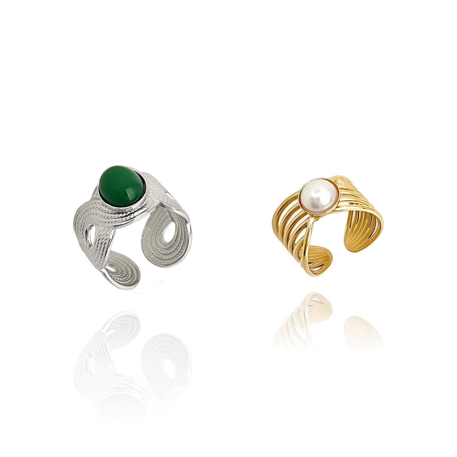 Ατσάλινο δαχτυλίδι με πέρλα και μαύρη πέτρα-ανοιγόμενο