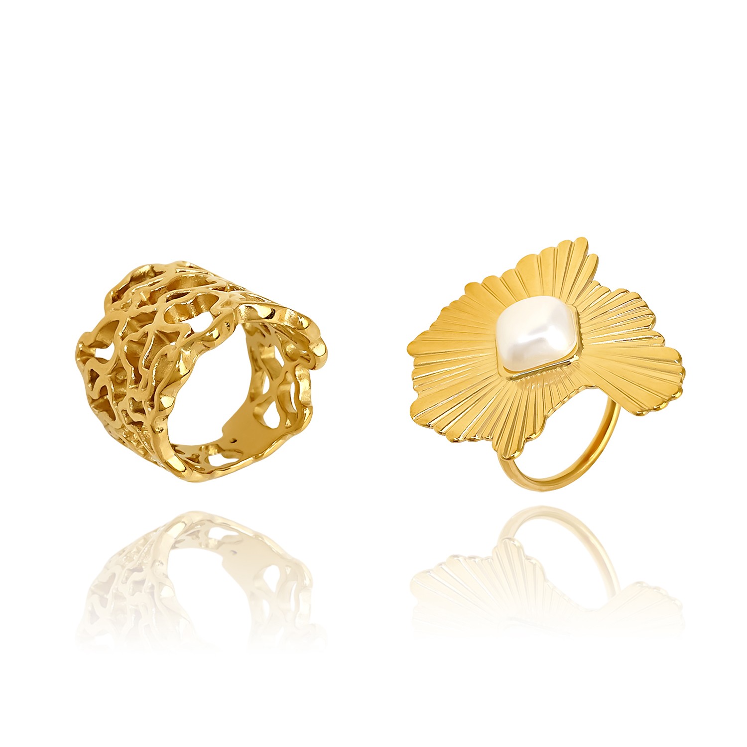 Ατσάλινο δαχτυλίδι δαντελωτό και ραβδωτό με πέρλα