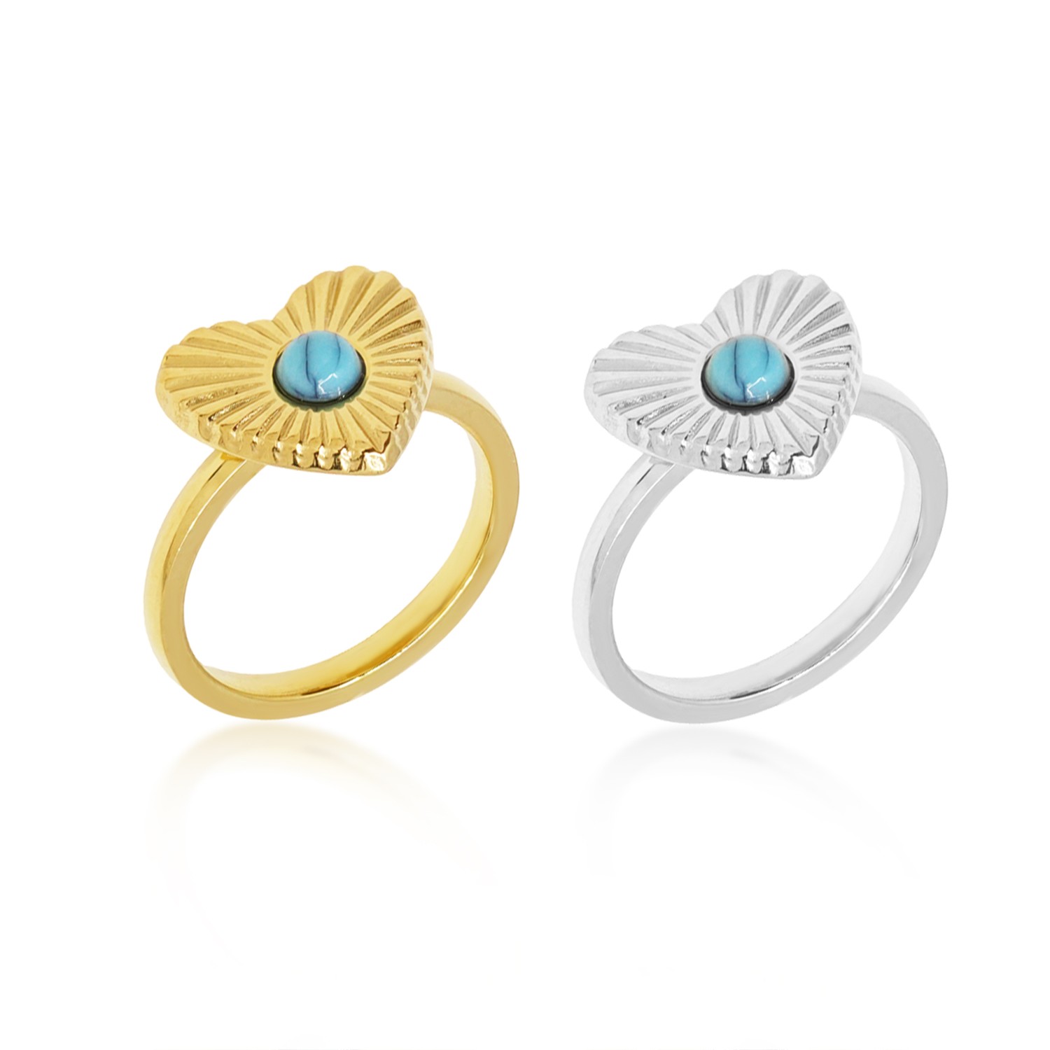 Ατσάλινο δαχτυλίδι καρδιά με χαολίτη