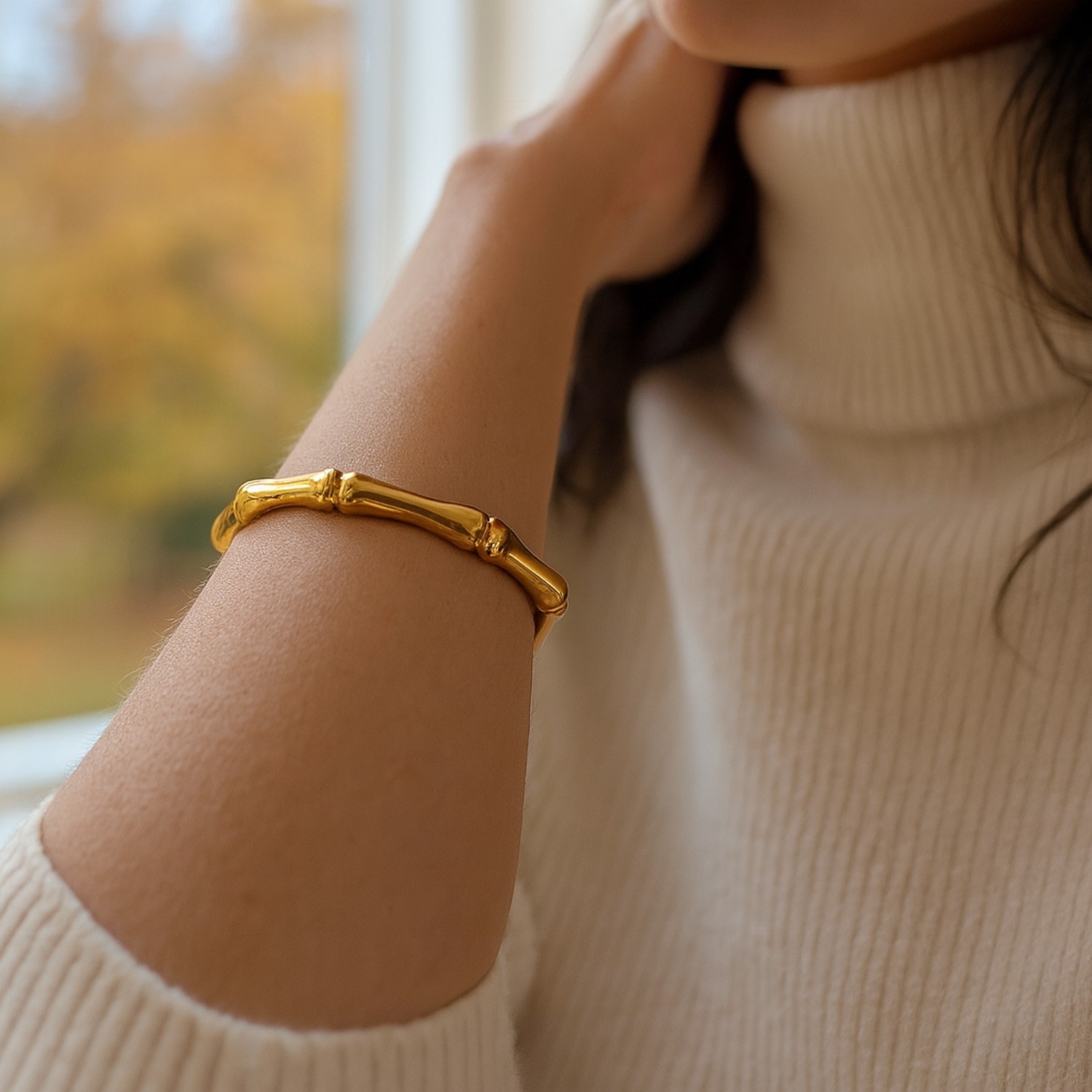 Ατσάλινο βραχιόλι χειροπέδα bamboo