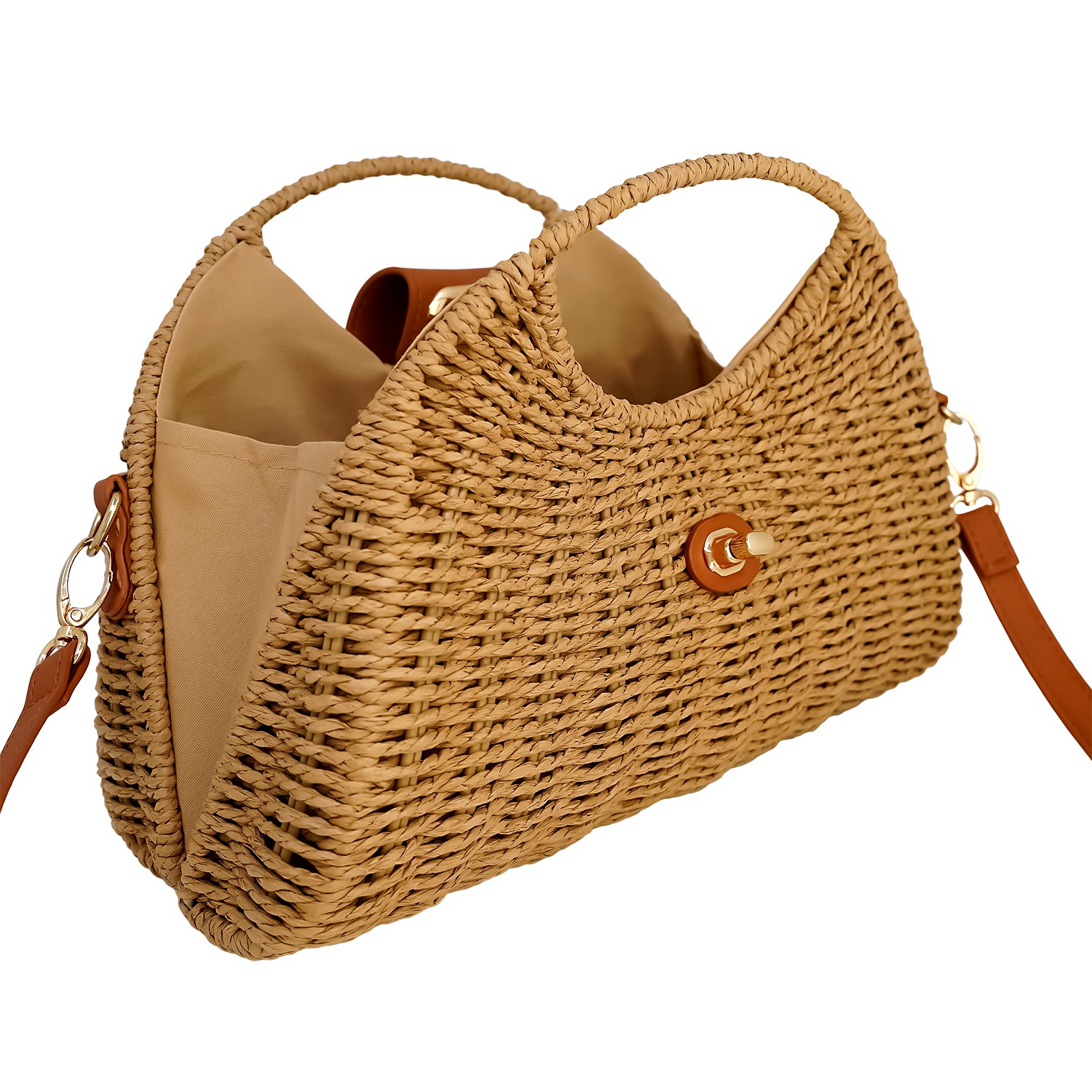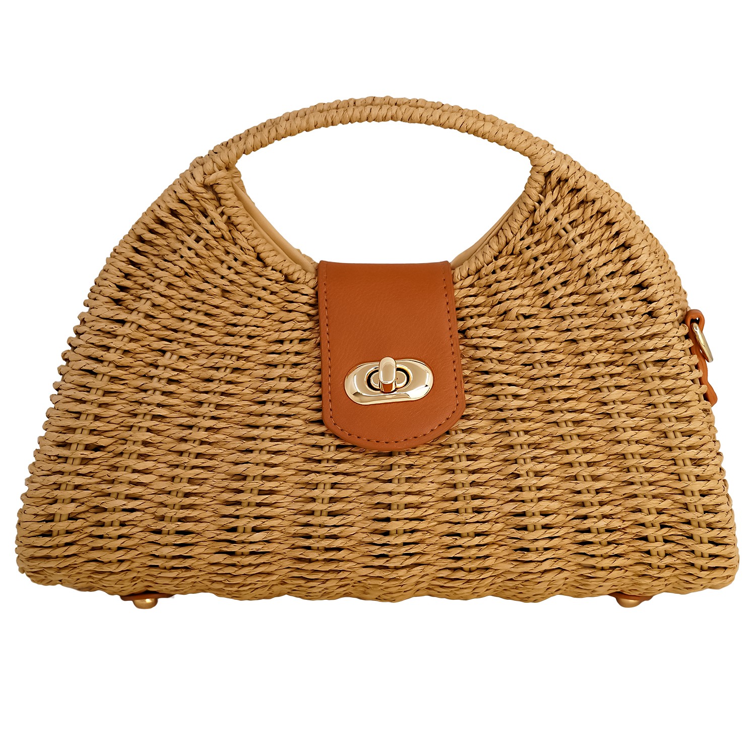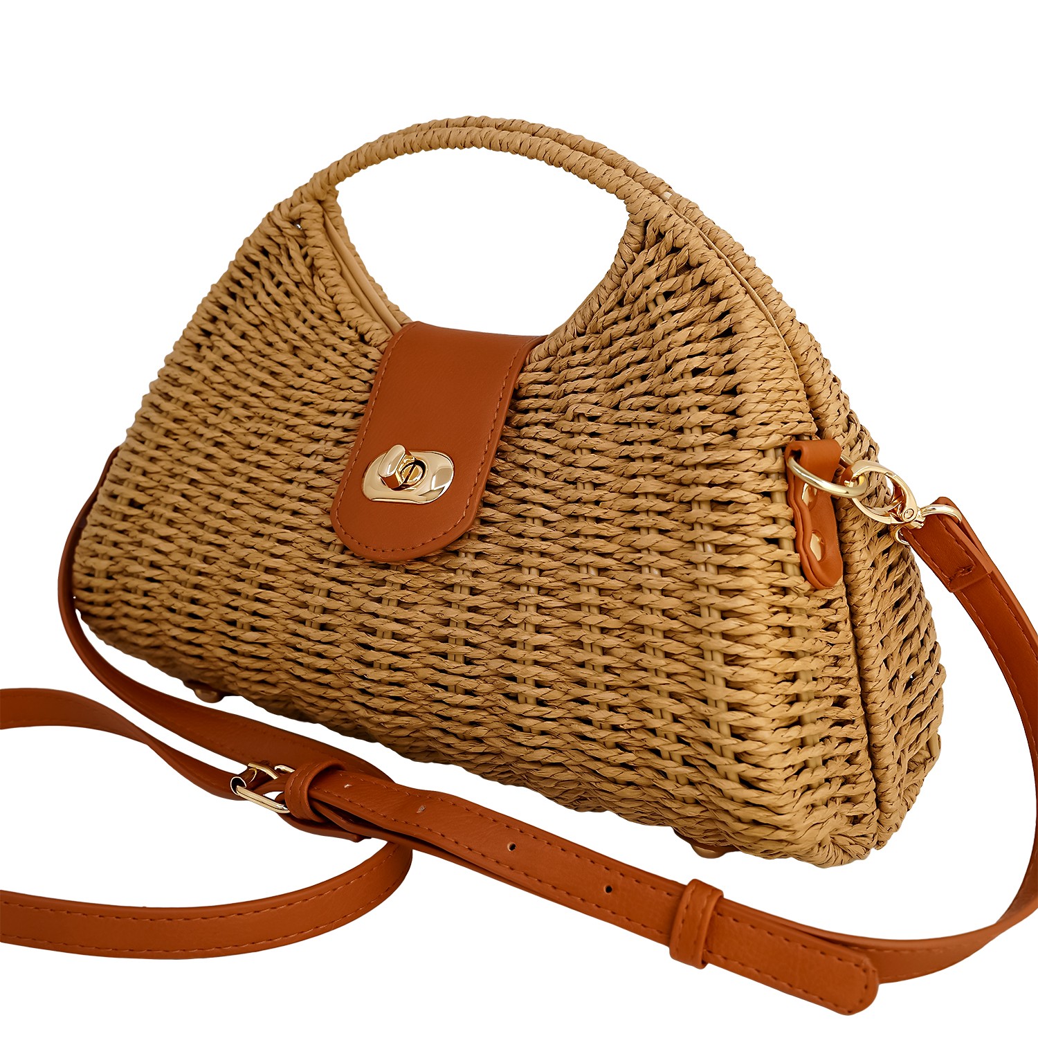 Γυναικεία τσάντα ψάθινη με λεπτομέρειες από οικολογικό δέρμα και λουράκι