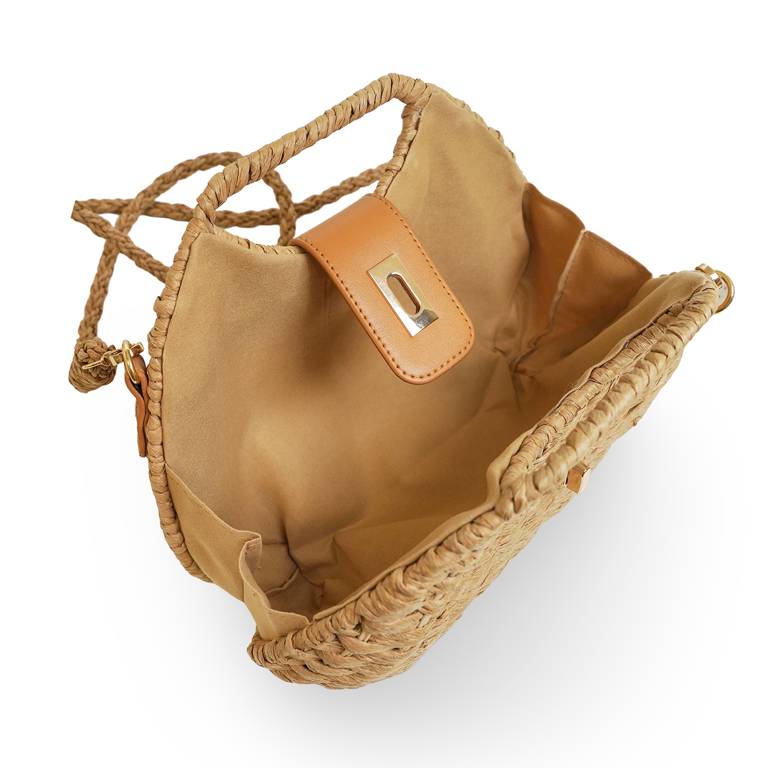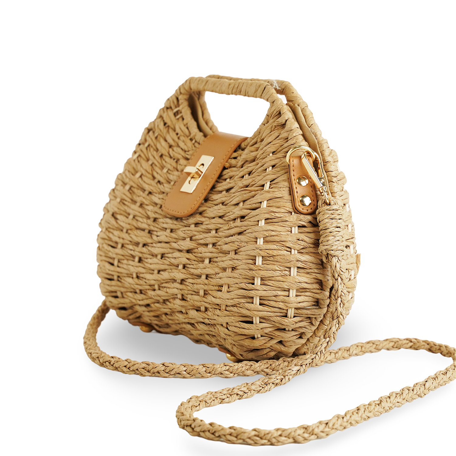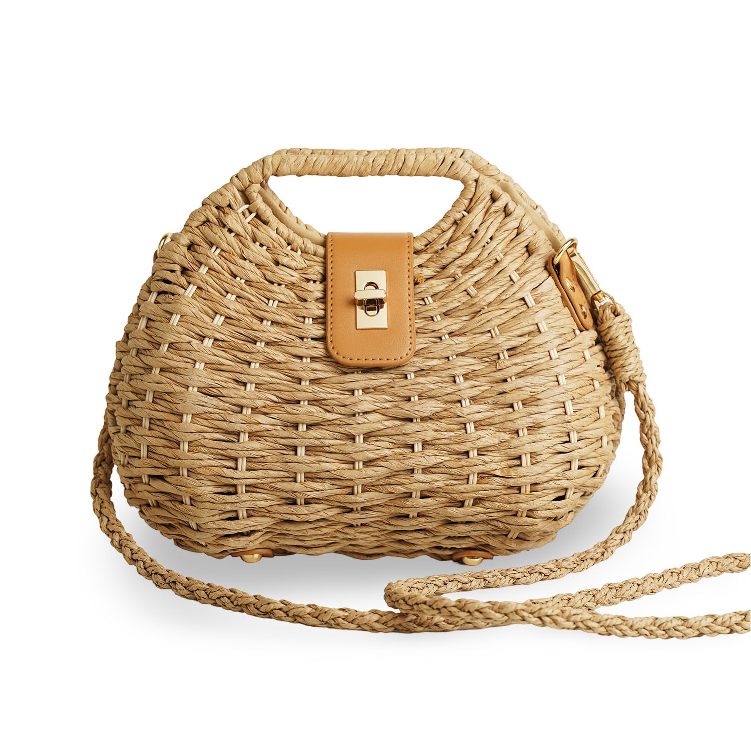 Γυναικεία τσάντα ψάθινη με λεπτομέρειες από οικολογικό δέρμα και λουράκι χιαστί
