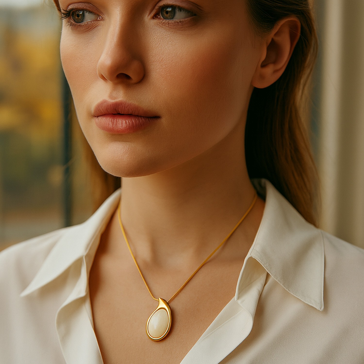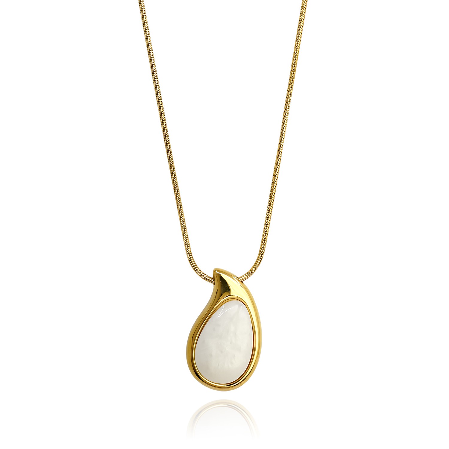 Κολιέ με ατσάλινη αλυσίδα και δάκρυ με οπάλιο