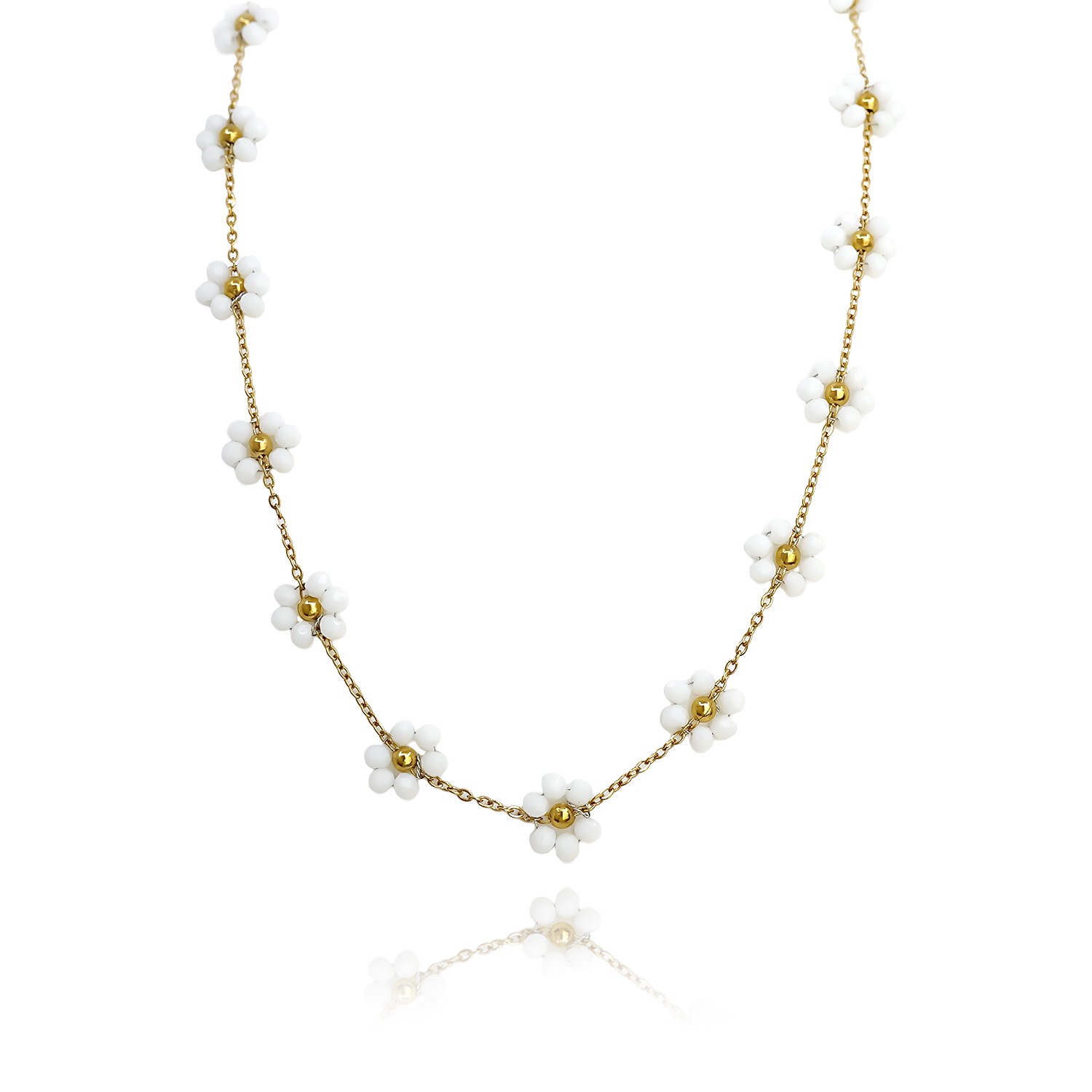 Κολιέ με ατσάλινη αλυσίδα και λουλούδια με κρύσταλλα