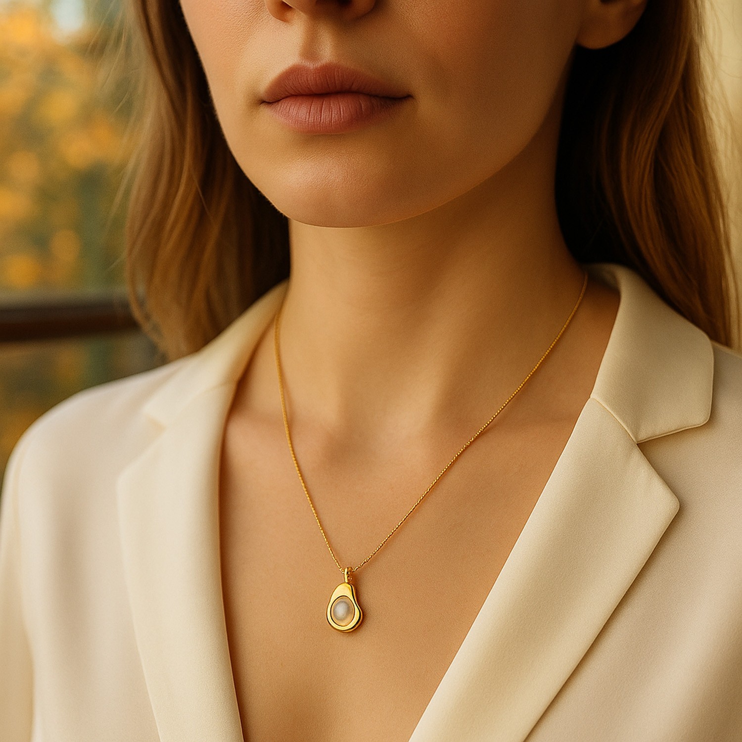 Κολιέ με ατσάλινη αλυσίδα και στοιχείο με μάτι γάτας