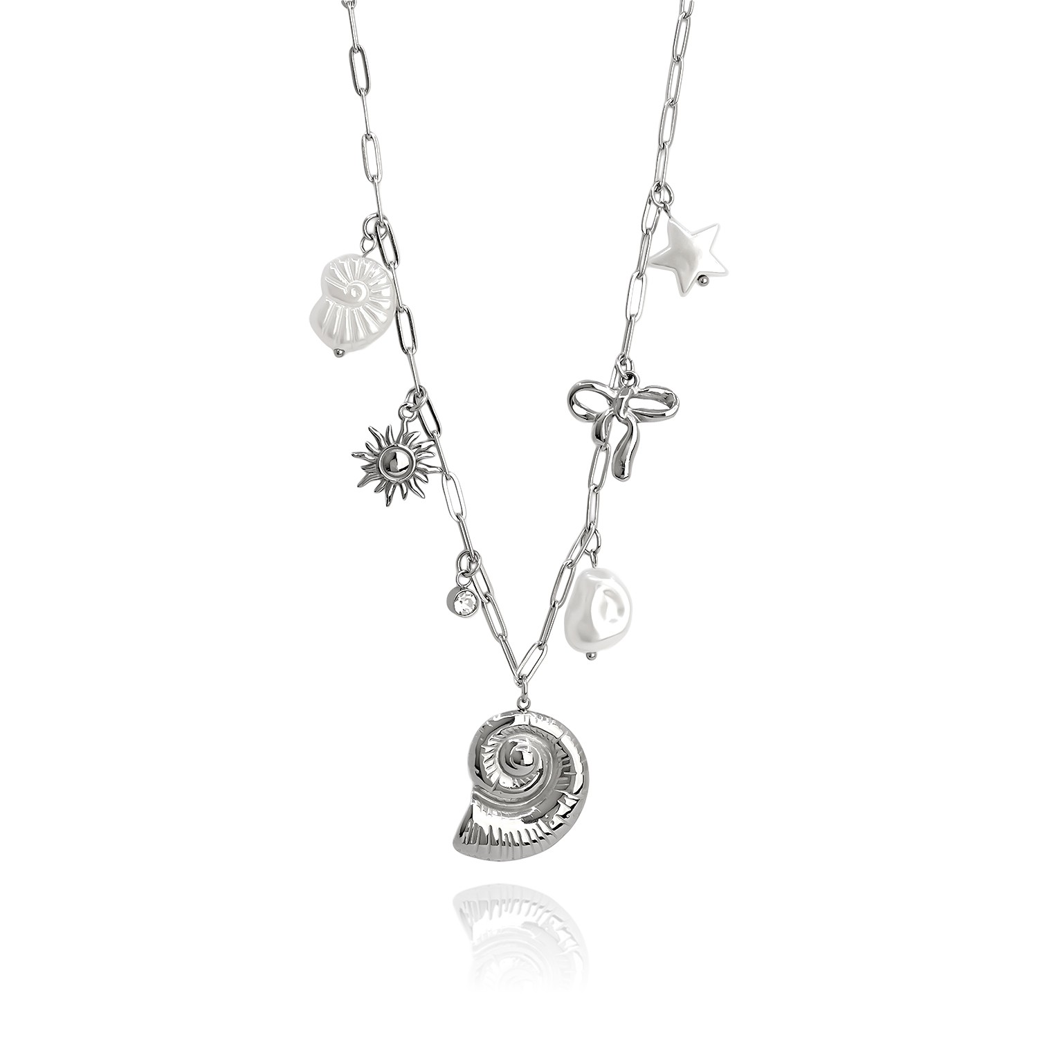 Κολιέ με ατσάλινη αλυσίδα και θαλασσινά charms