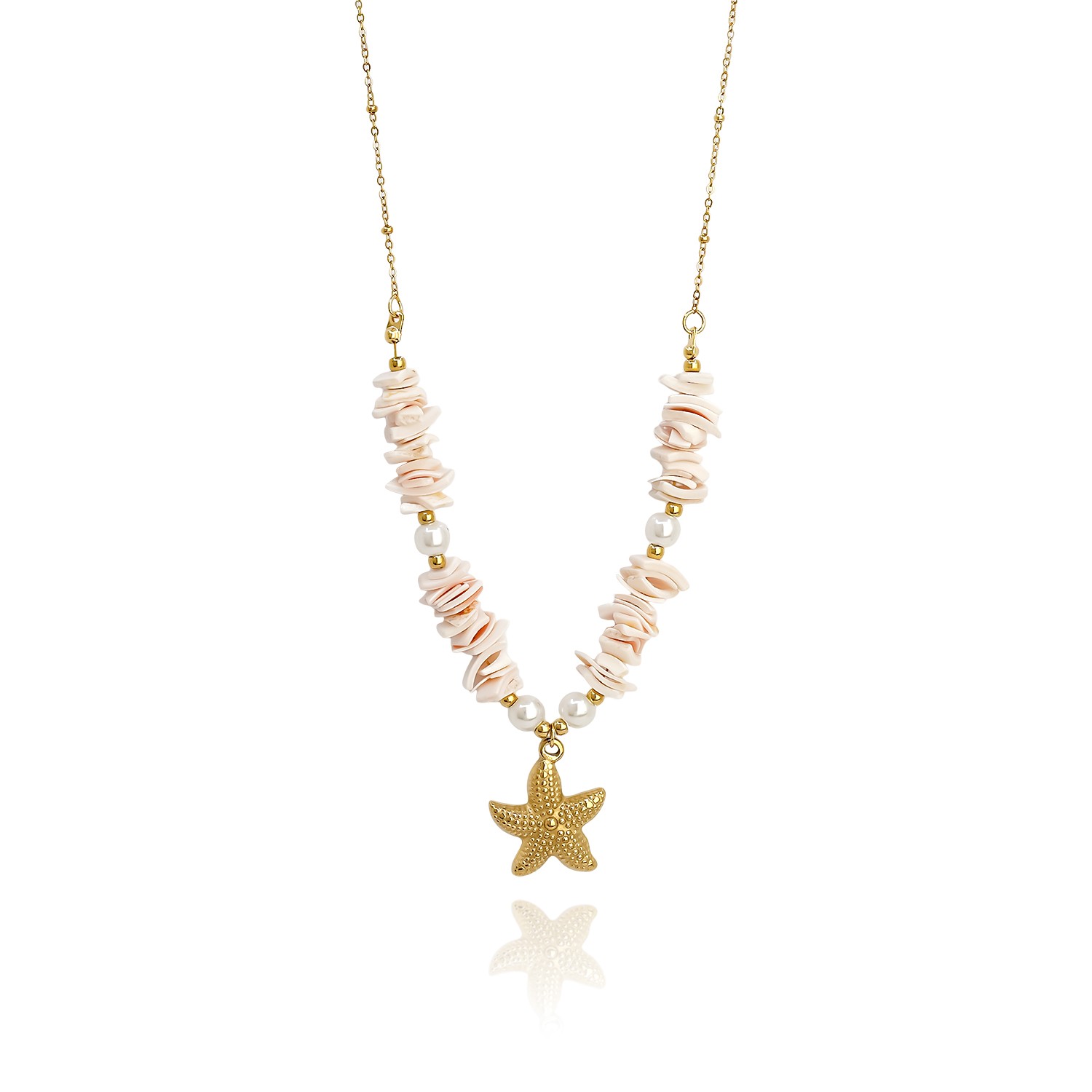 Κολιέ με ατσάλινη αλυσίδα, κοχύλια και ατσάλινο αστερία