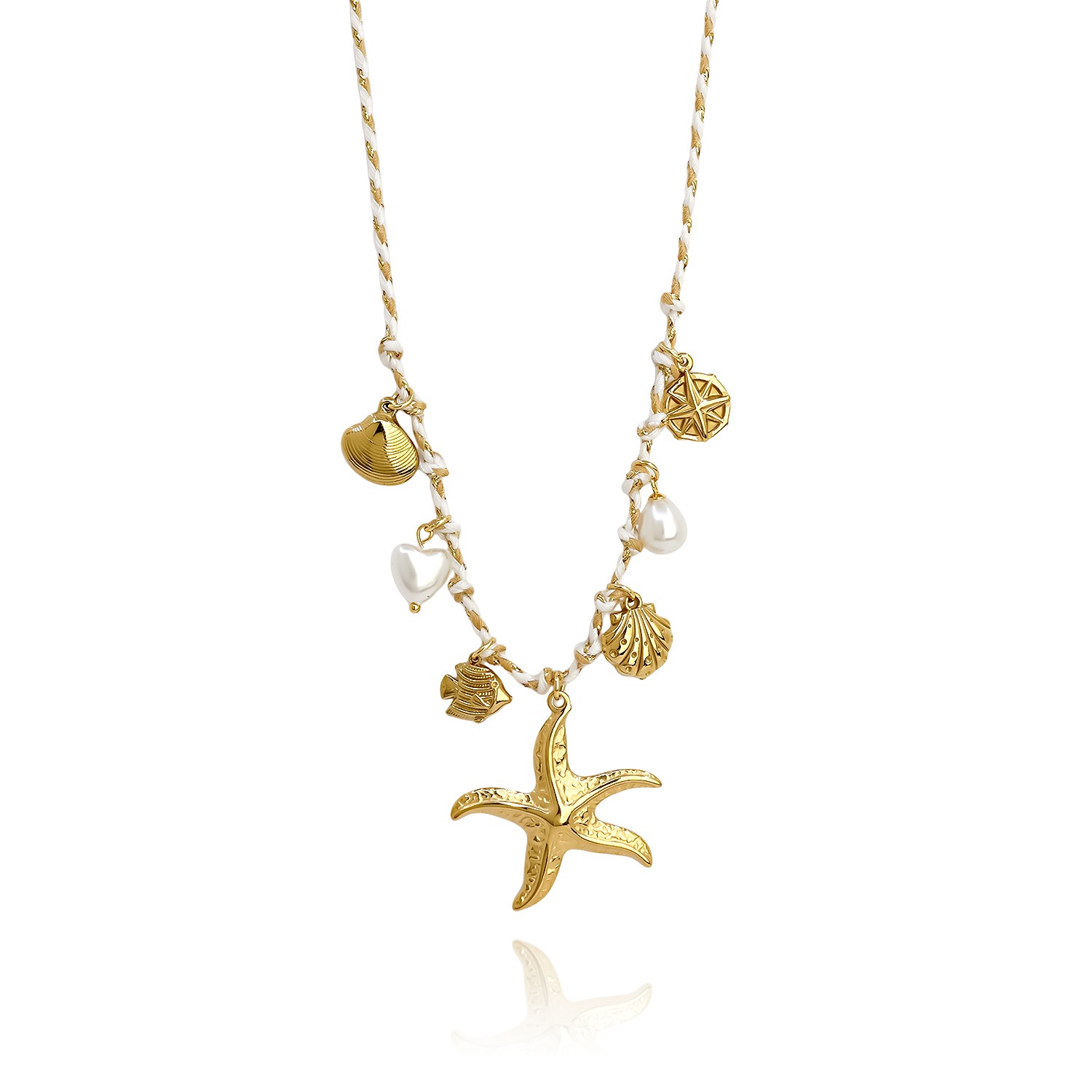 Κολιέ με ατσάλινη αλυσίδα και θαλασσινά charms