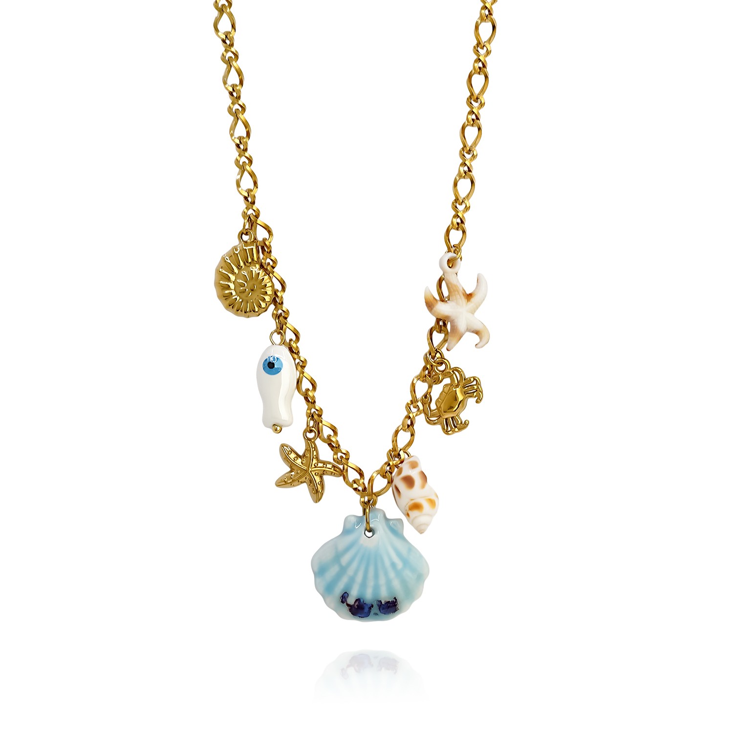 Κολιέ με ατσάλινη αλυσίδα και κεραμική αχιβάδα