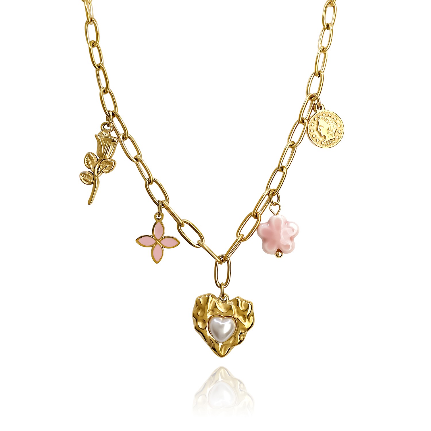 Κολιέ με ατσάλινη αλυσίδα, καρδιά και στοιχεία