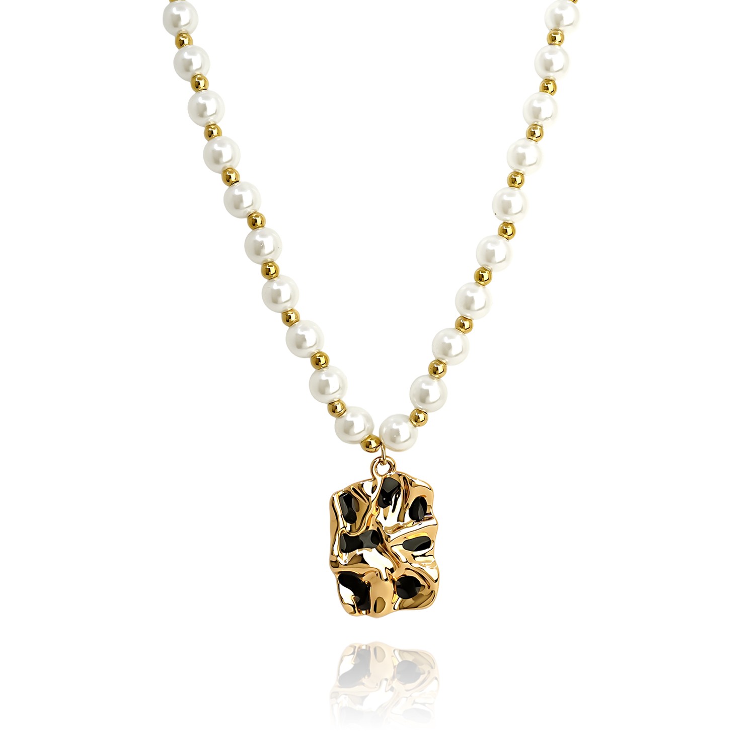 Κολιέ με πέρλες και ατσάλινα στοιχεία