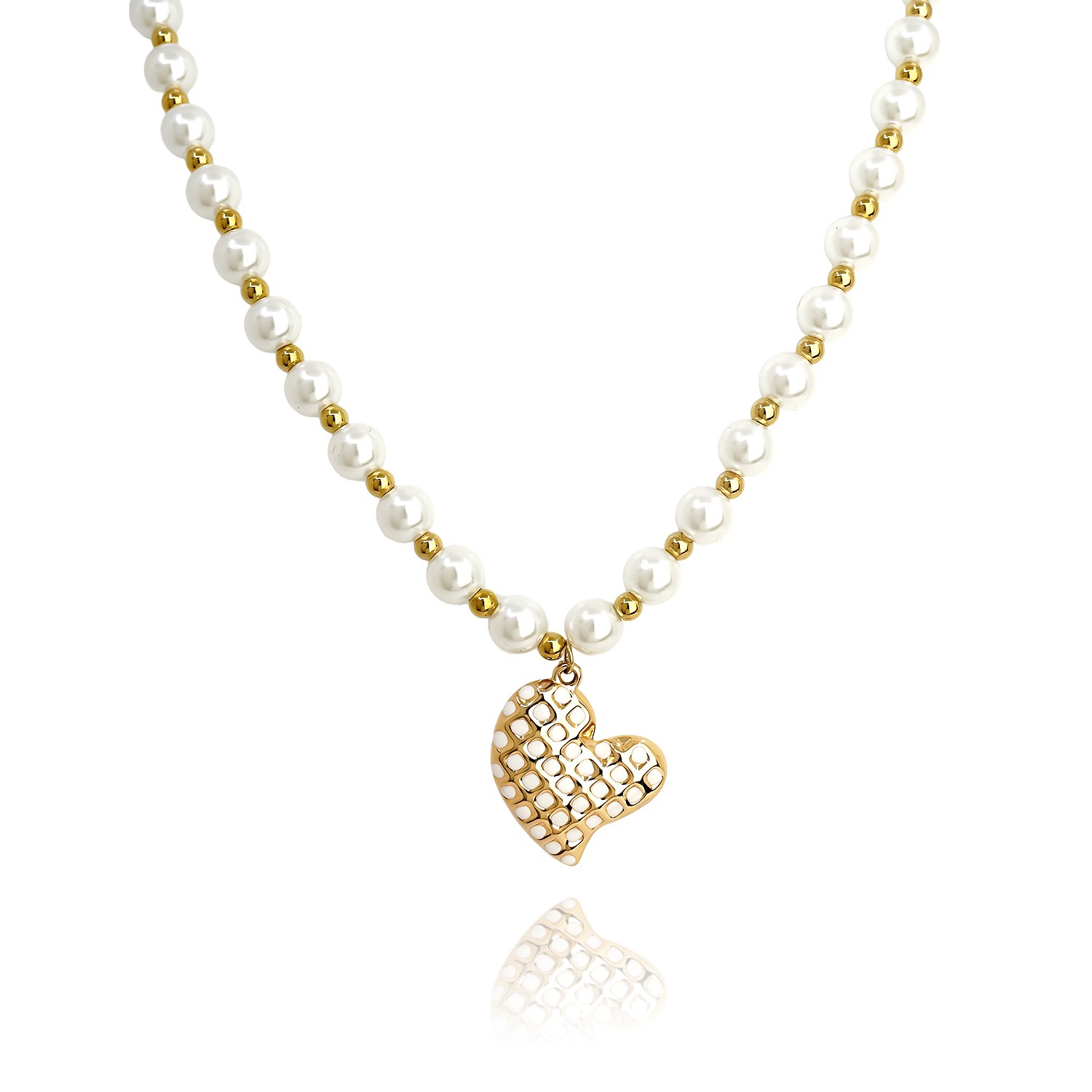 Κολιέ με πέρλες και ατσάλινα στοιχεία