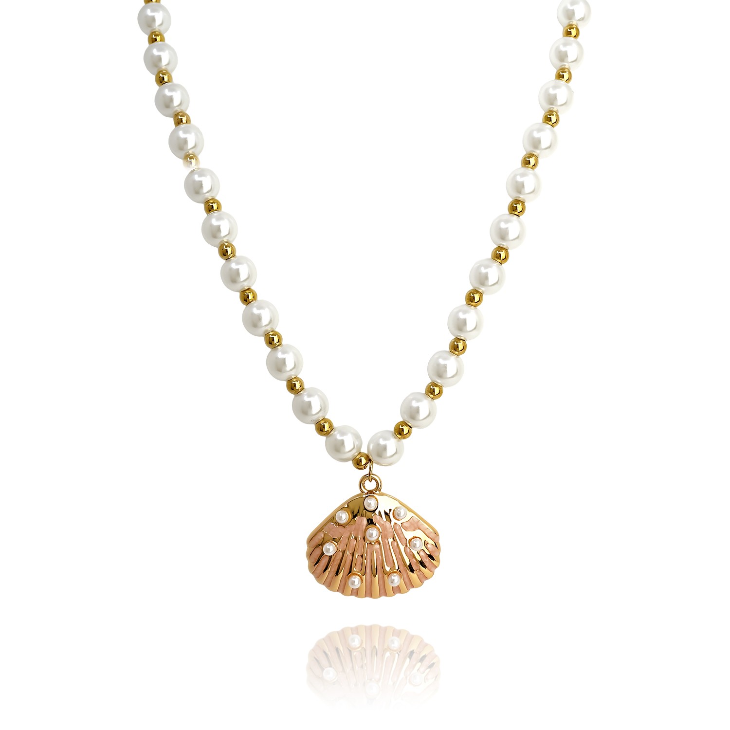 Κολιέ με πέρλες και ατσάλινα στοιχεία