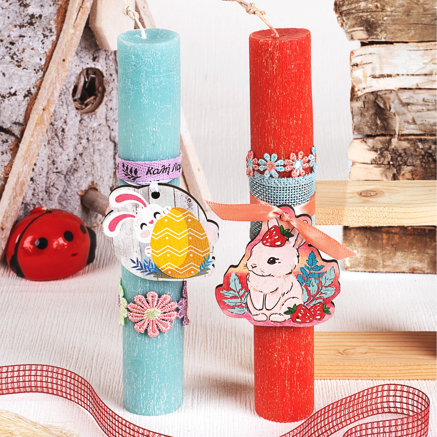 Ξύλινο στοιχείο λαγουδάκι με φράουλες