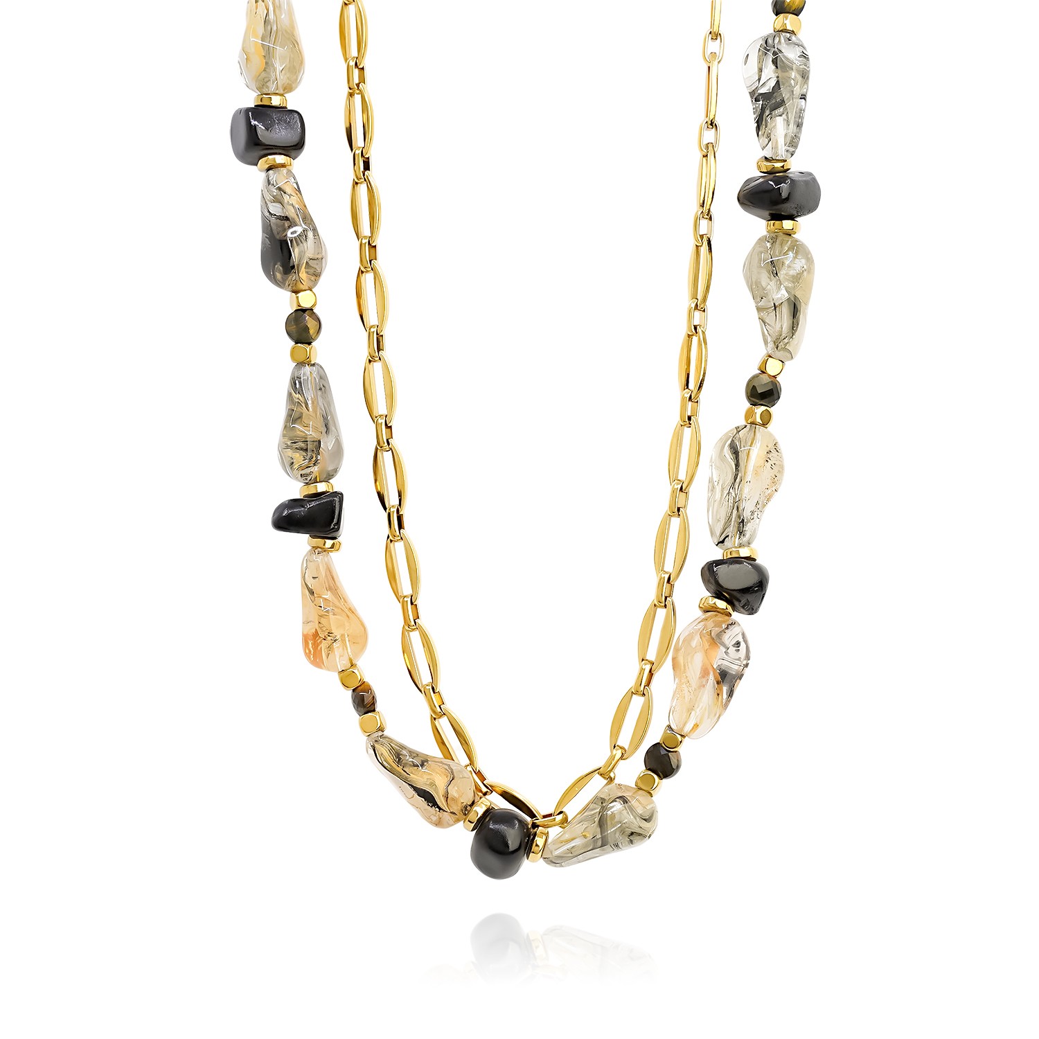 Χειροποίητο διπλό κολιέ με ατσάλινη αλυσίδα και κρύσταλλα