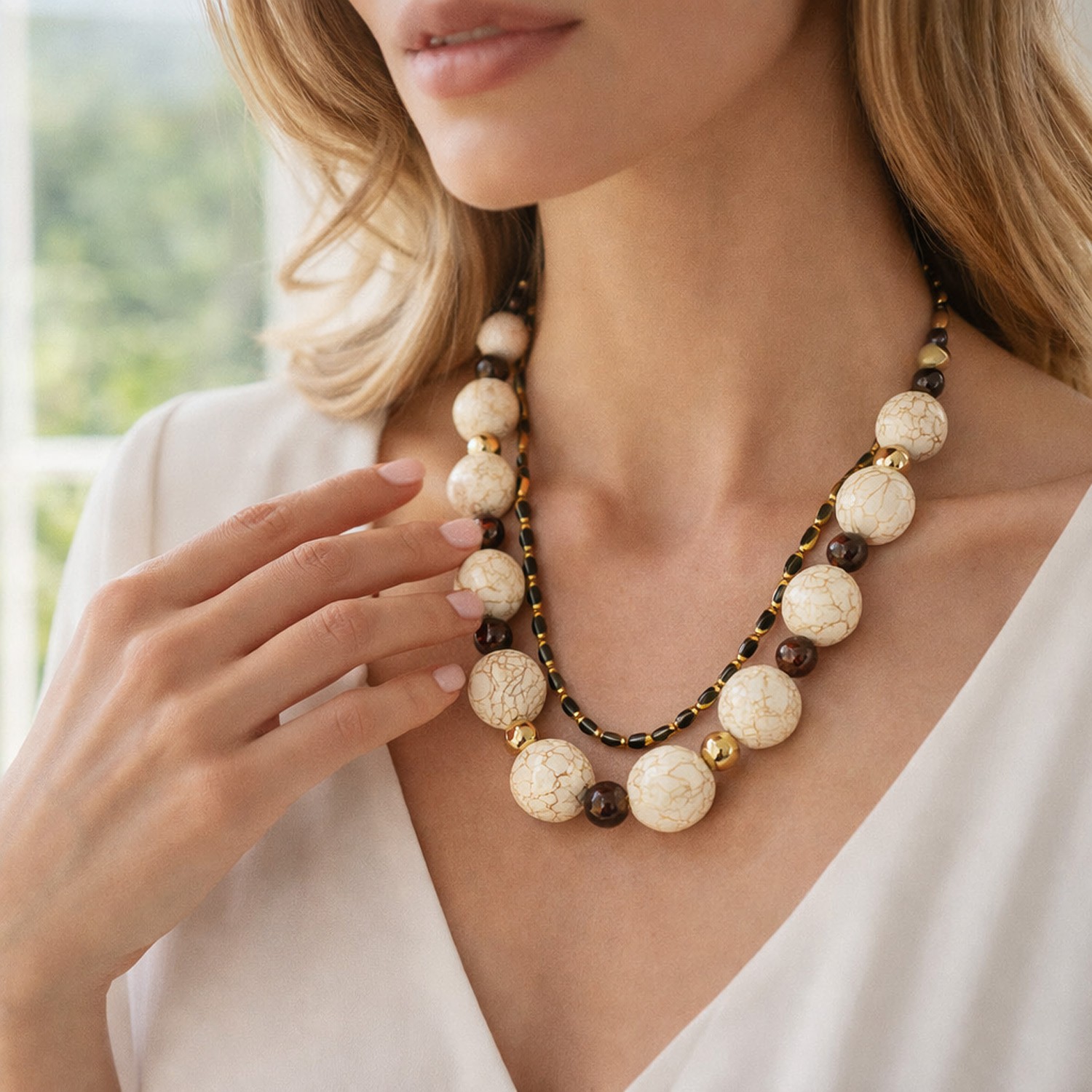 Χειροποίητο διπλό κολιέ με χαολίτη και κρύσταλλα