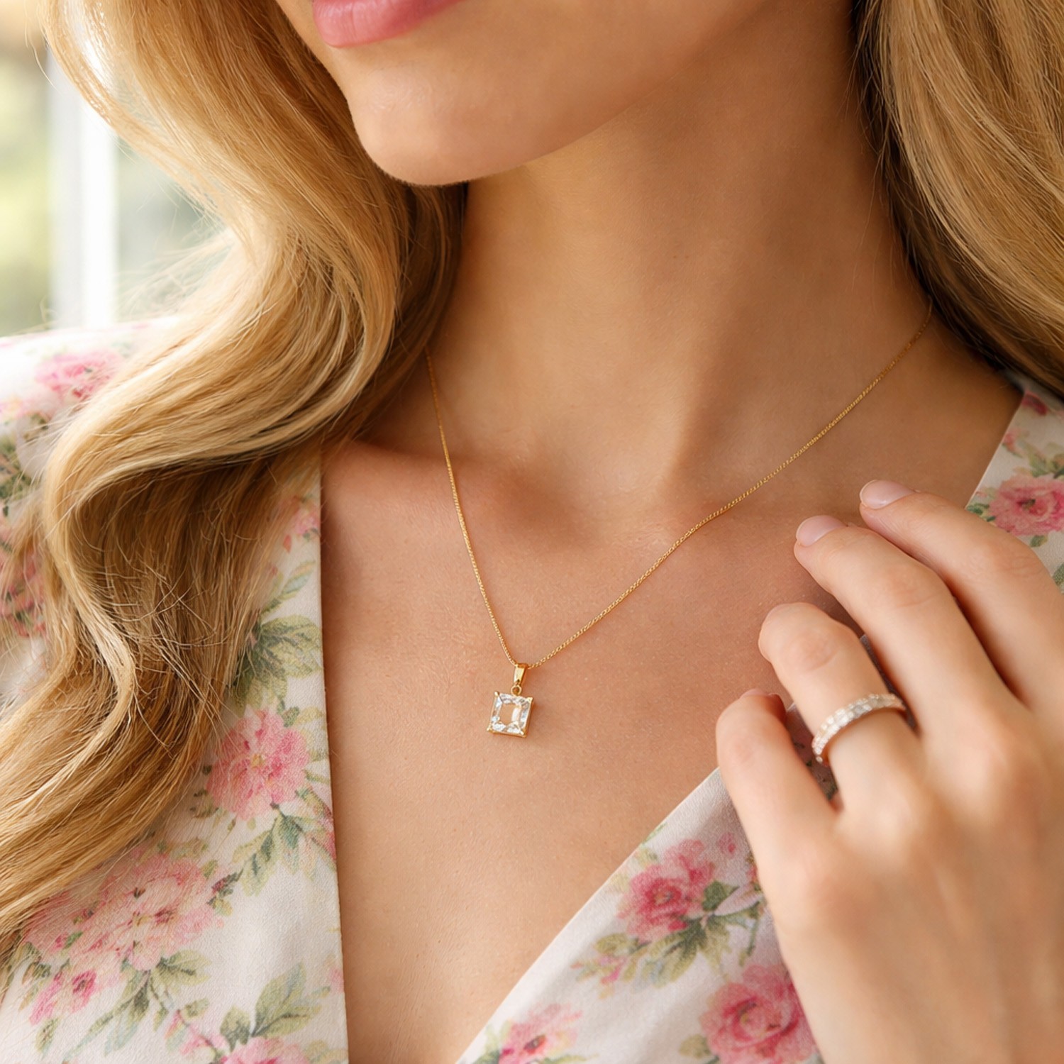 Χειροποίητο κολιέ με ατσάλινη αλυσίδα και κρύσταλλο