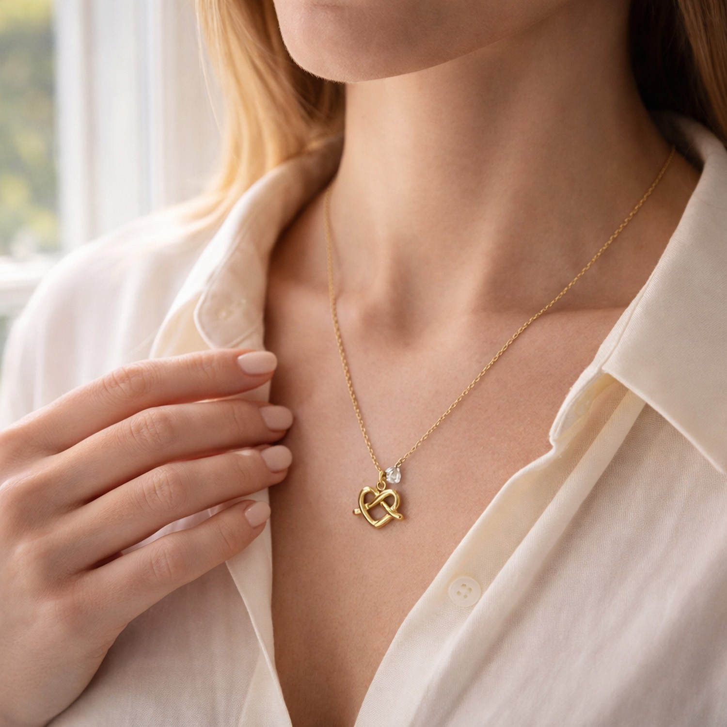 Χειροποίητο κολιέ με ατσάλινη αλυσίδα και πλεκτή καρδιά