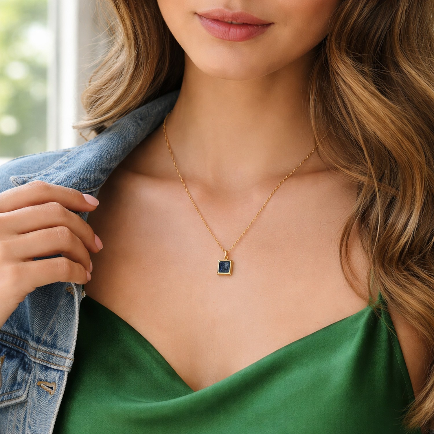 Χειροποίητο κολιέ με ατσάλινη αλυσίδα και στοιχείο με glitter