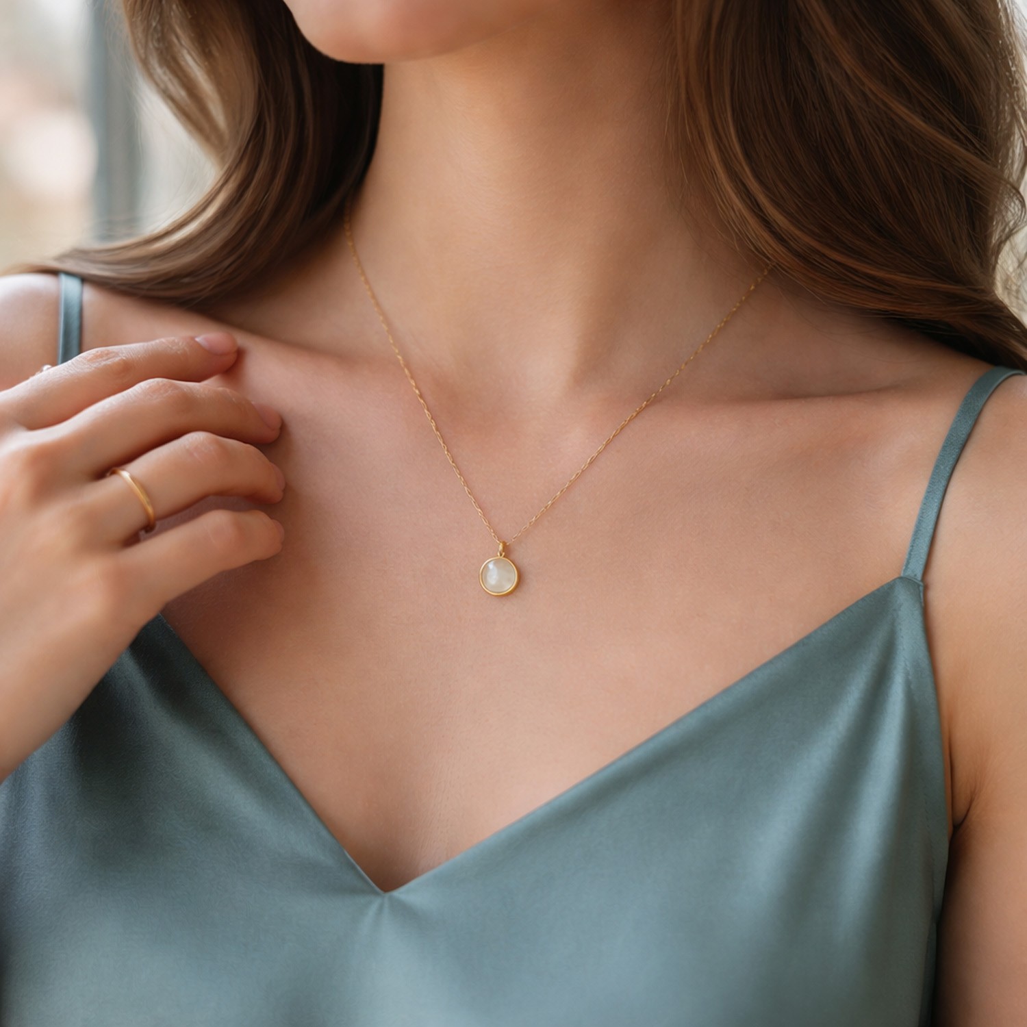 Χειροποίητο κολιέ με ατσάλινη αλυσίδα και στοιχείο με οπάλιο