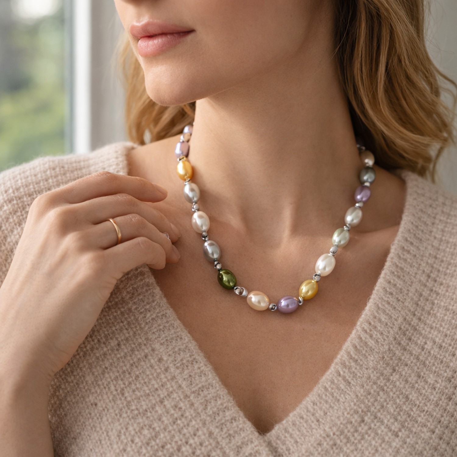Χειροποίητο κολιέ με γυάλινα δάκρυα και αιματίτη