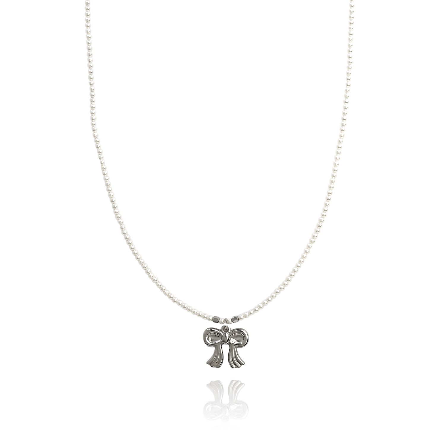 Χειροποίητο κολιέ με πέρλες και φιογκάκι